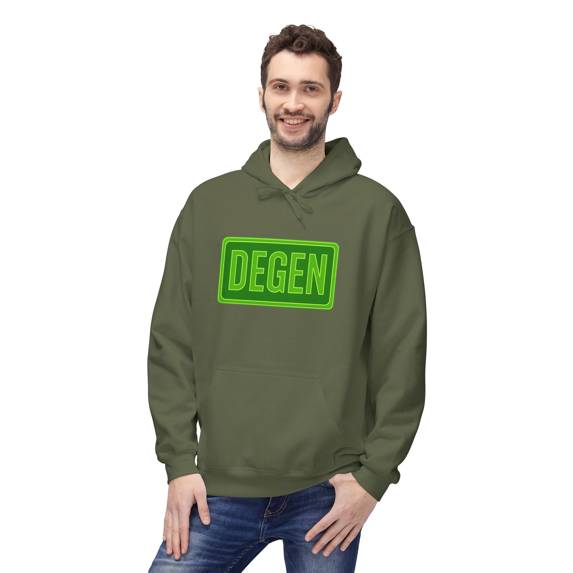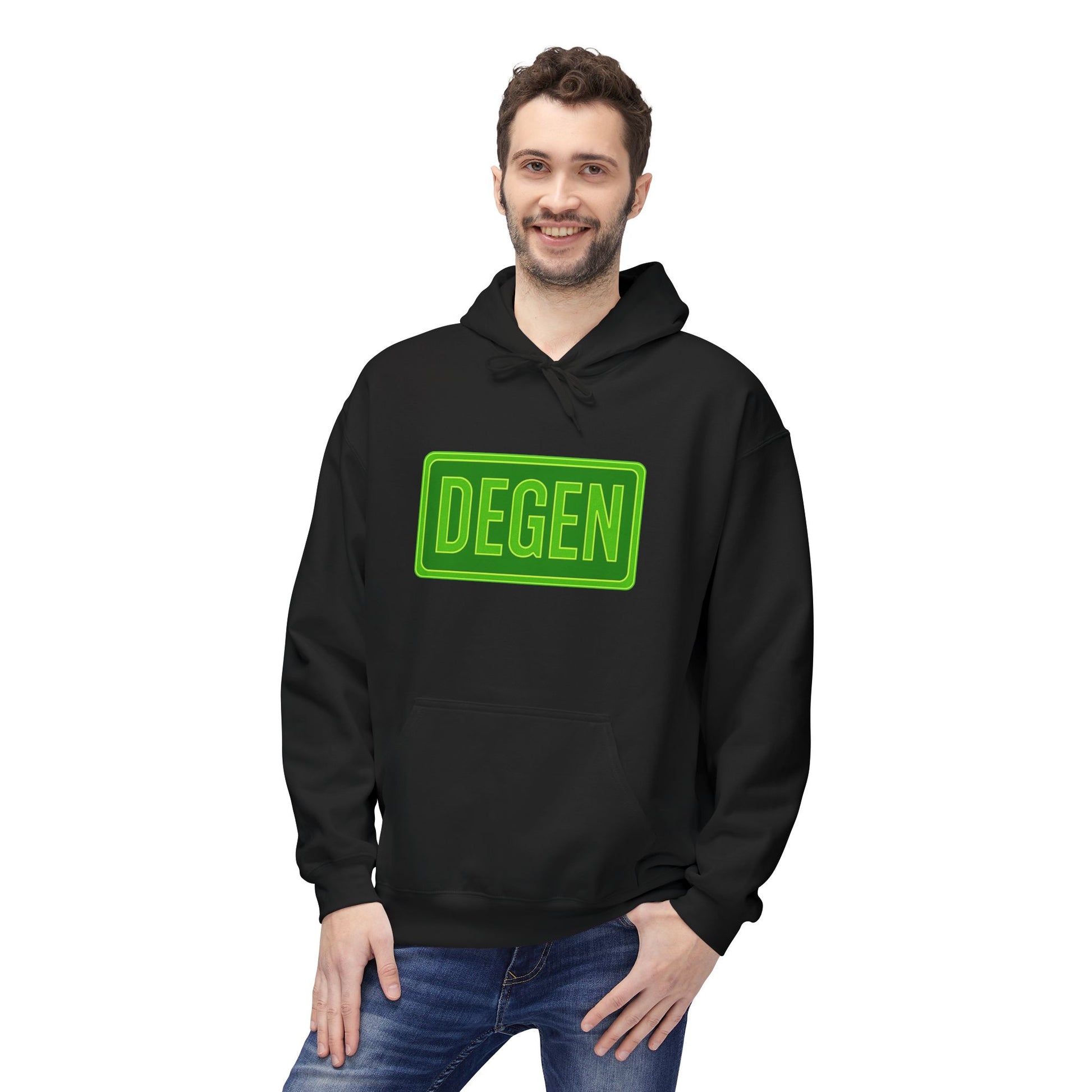 Degen Collection Casual Fleece Hoodie with 'DEGEN' Graphic, Cozy Streetwear, Perfect for Every Day, Great Gift for Friends, Ideal for Layering