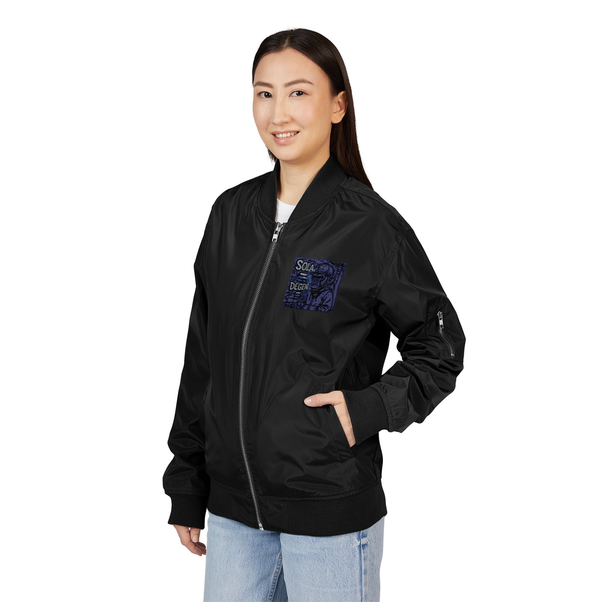 Solana Degen Eco-Friendly Embroidered Bomber Jacket, Stylish Outerwear, Sustainable Fashion, Perfect for Spring, Casual Wear, Great Gift Idea