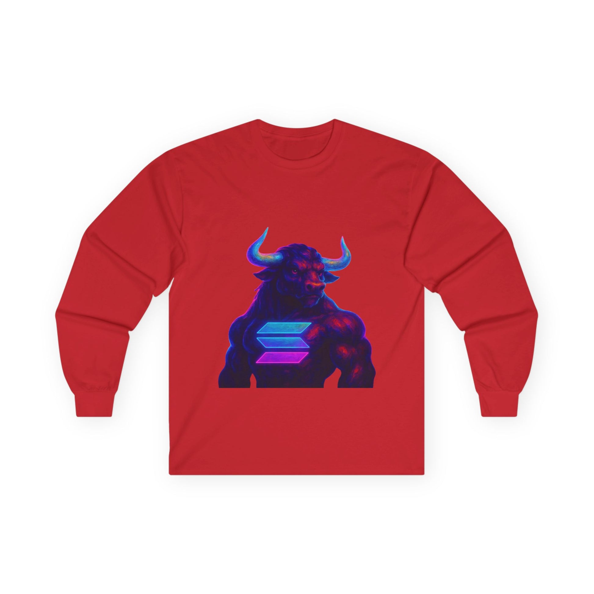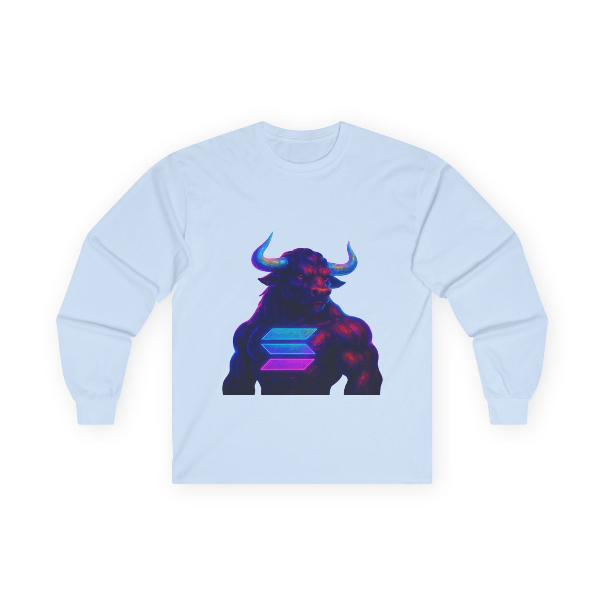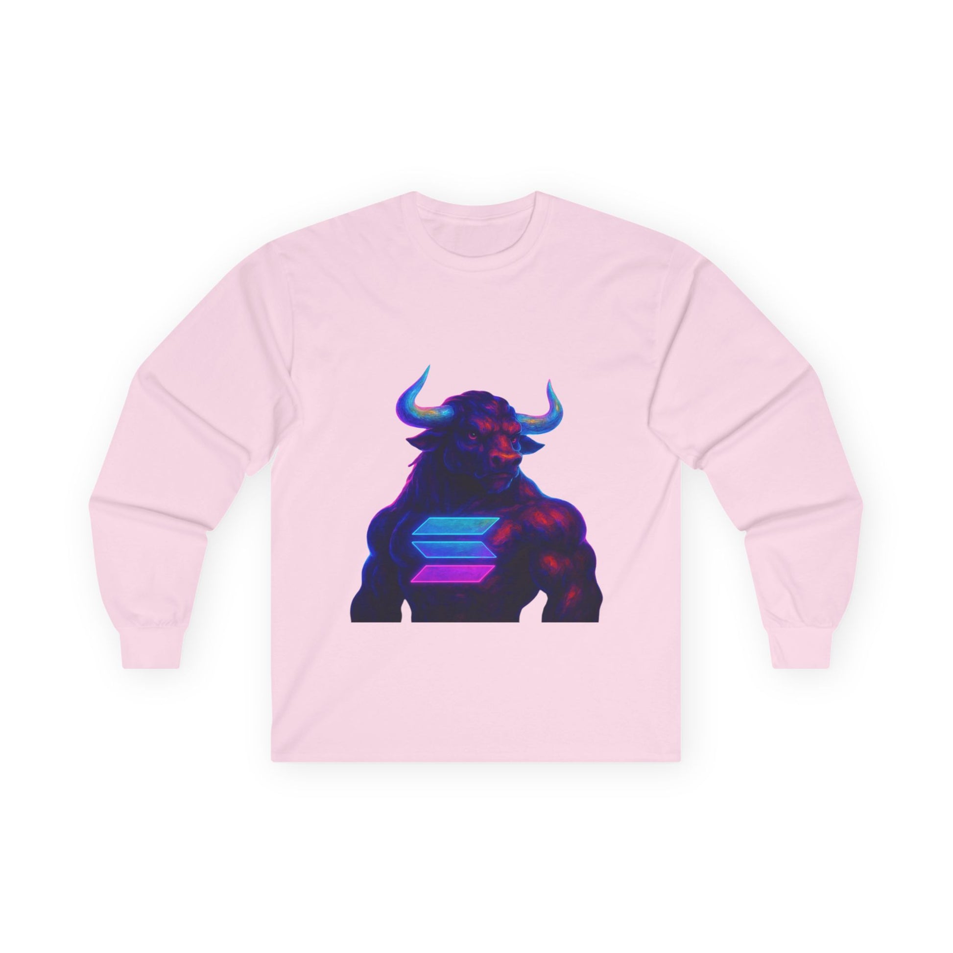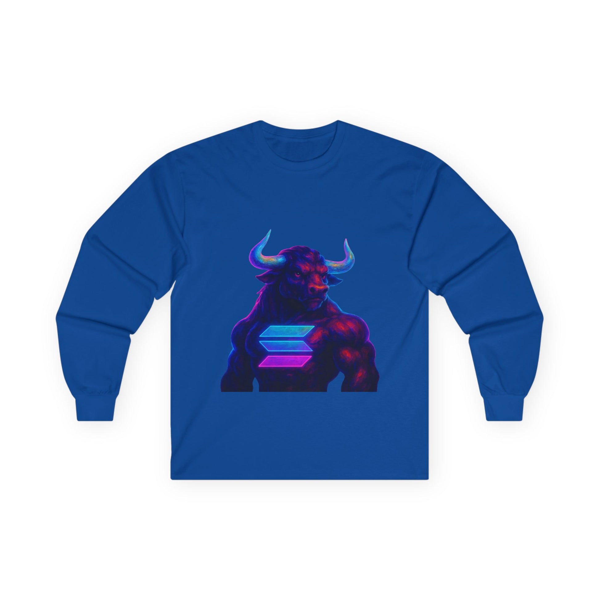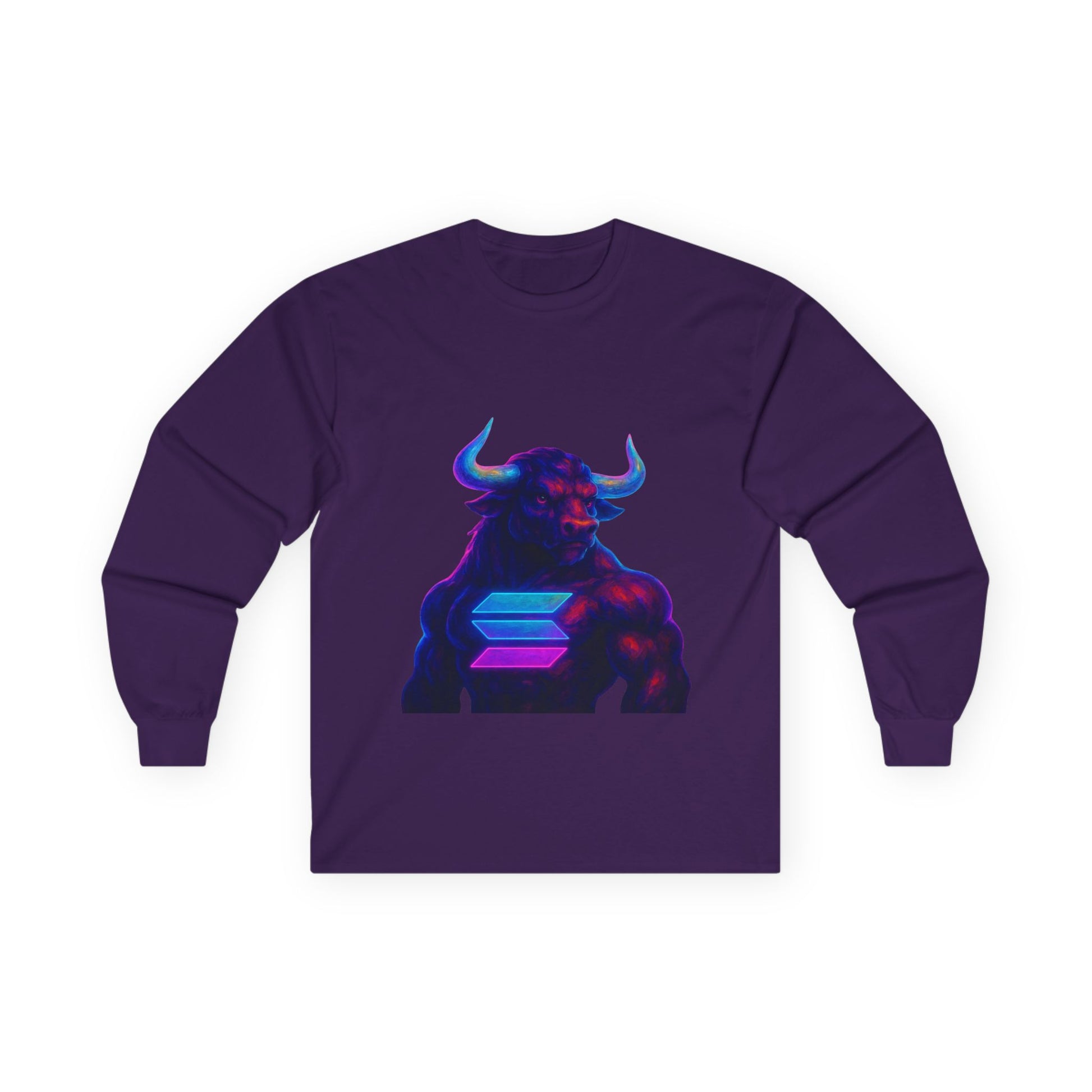 Solana Retro Bull Graphic Tee, Unisex Long Sleeve Shirt, Vintage Style Apparel, Gift for Him/Her, Cool Casual Wear, Cyberpunk Vibes