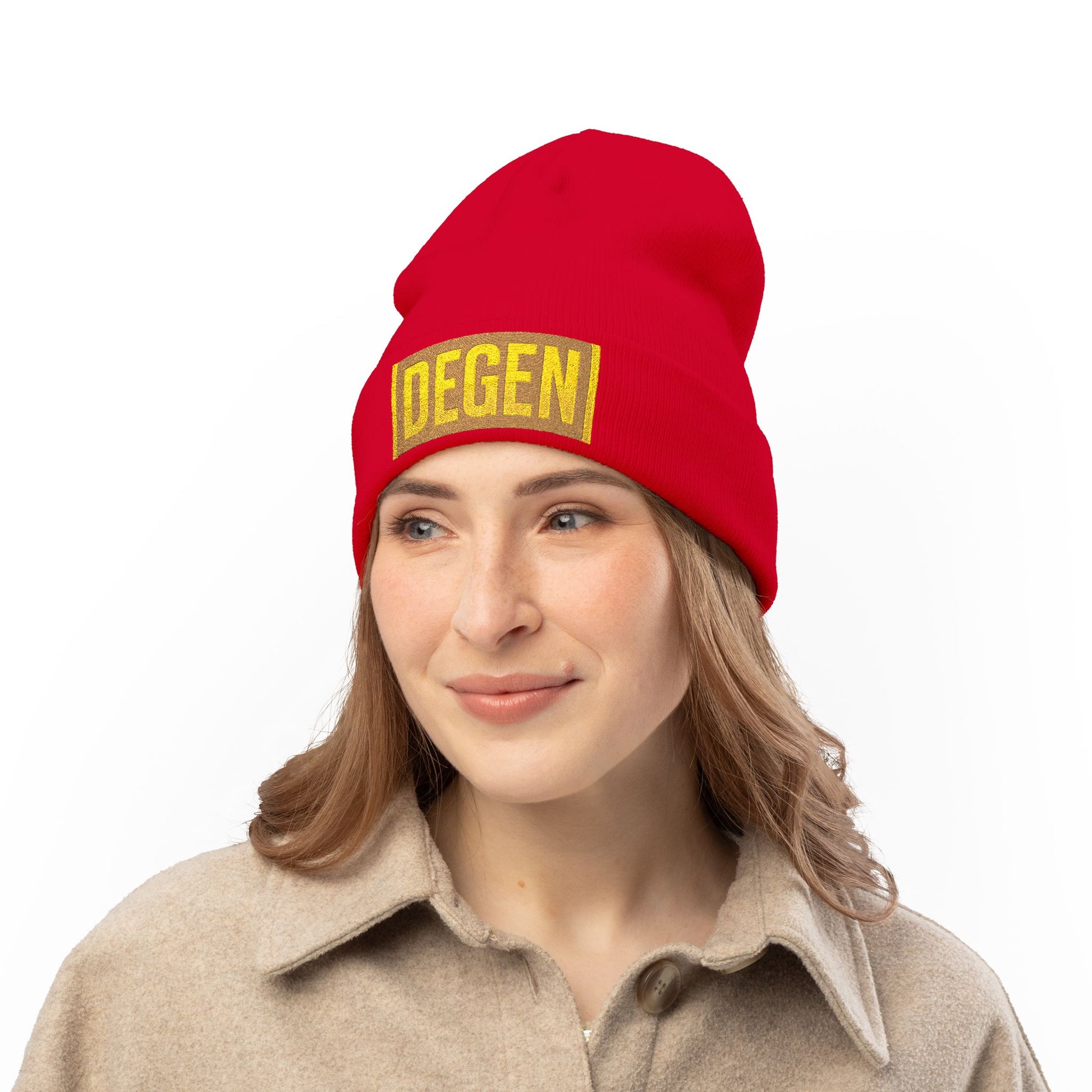 Stylish Knit Beanie with Embroidered 'DEGEN' | Warm Winter Hat, Unisex Beanie, Gift for Him/Her, Casual Headwear, Trendy Accessory
